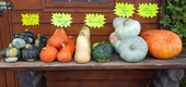 citrouille, musquée, galeuse, verdaline, bleu de Hongrie 1,50 € le kilo